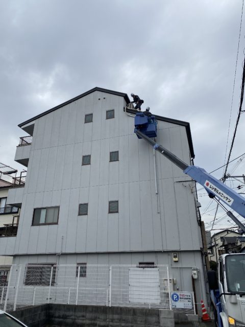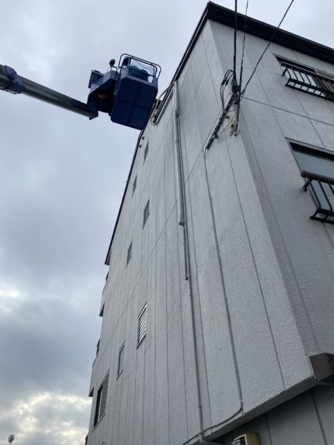 外部の配管作業が長尺のハシゴではとどかない