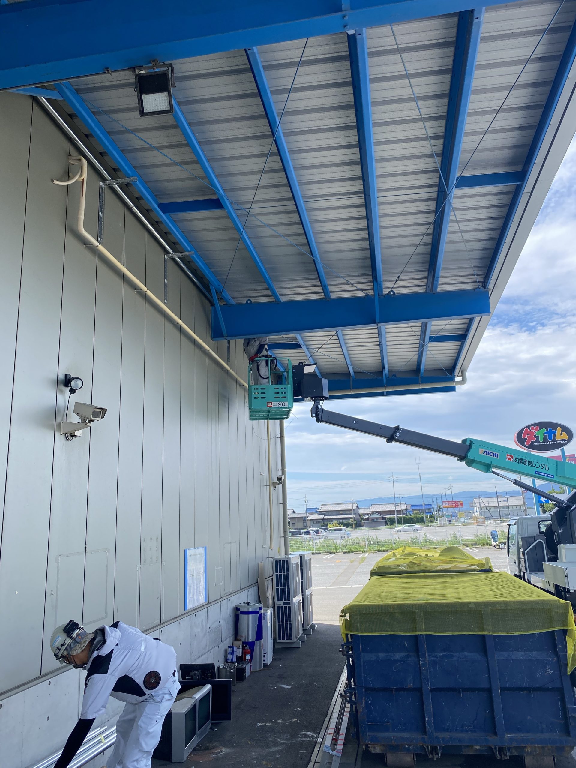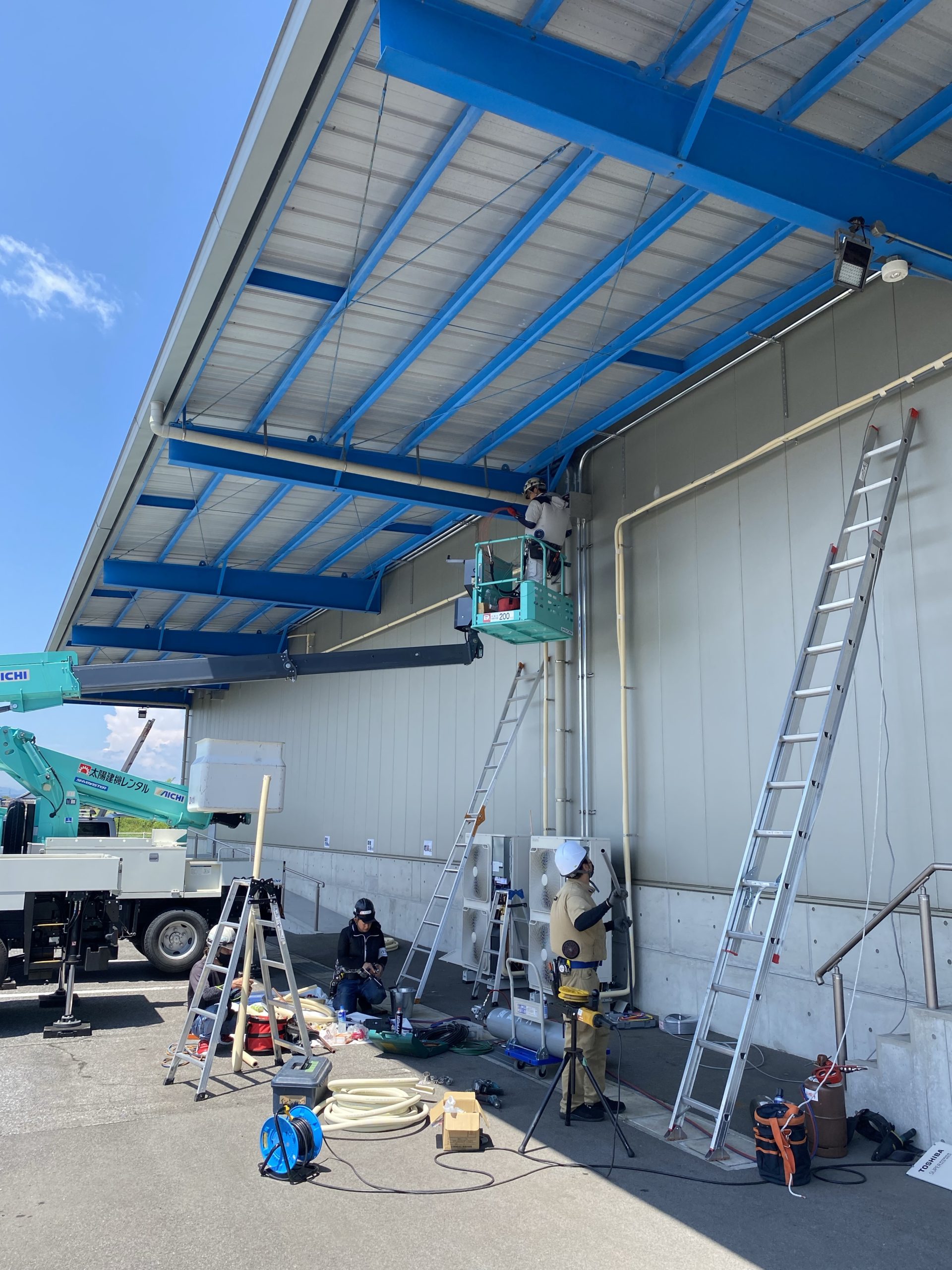 高所作業車にて施工