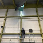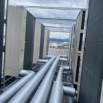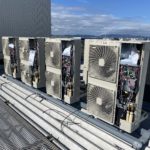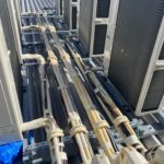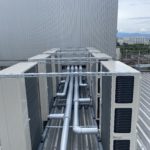 床置き10馬力エアコンの取替え工事 配管長は屋上まで30mラッキング使用