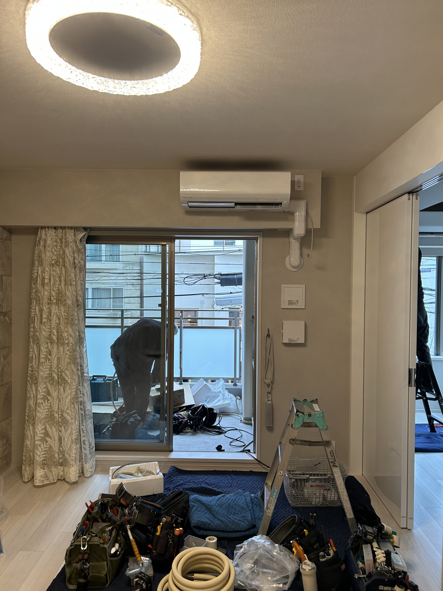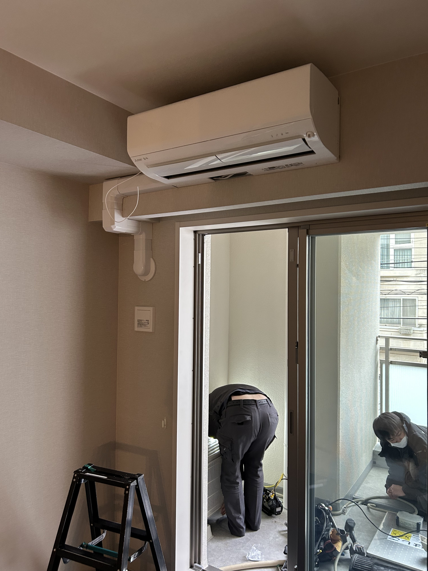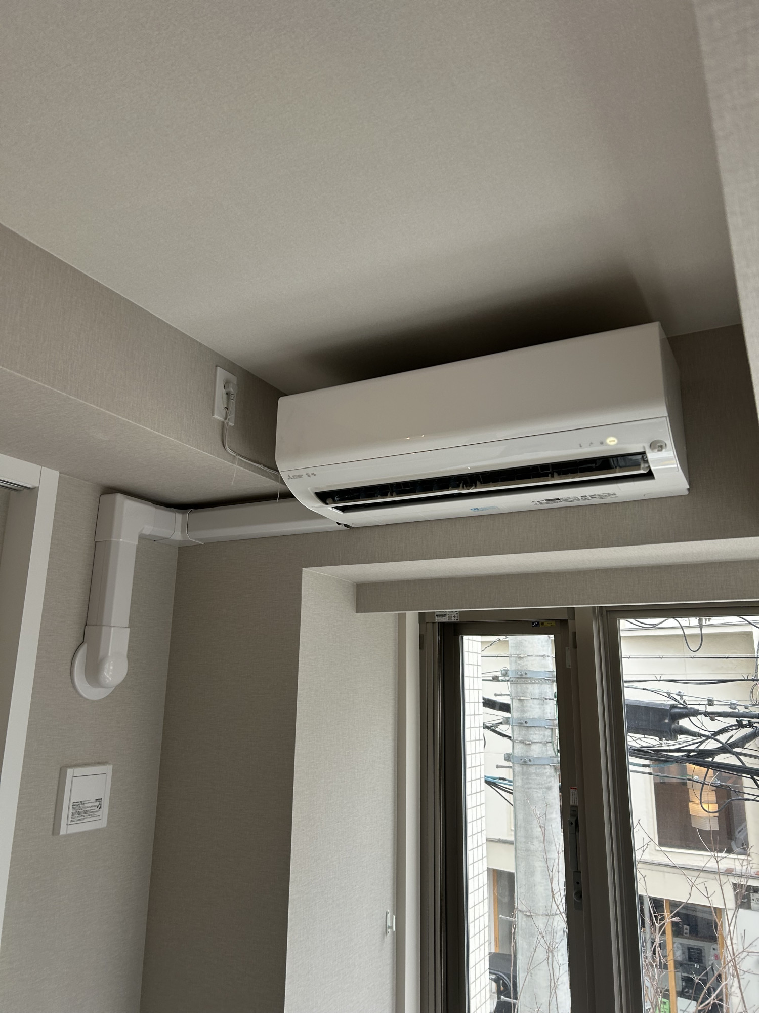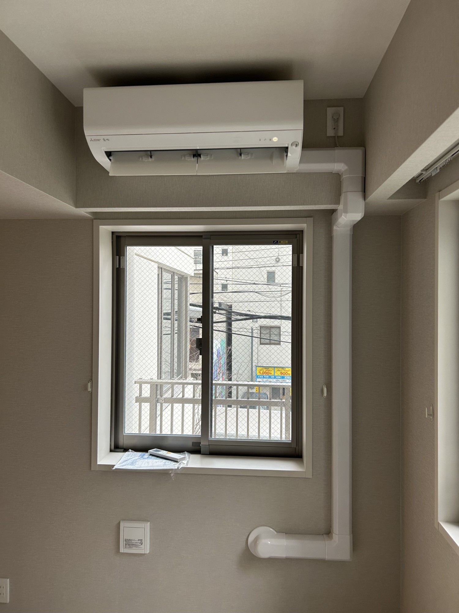 洋室2設置後、配管右出し下折れ室内下部出し変則